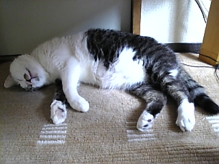 み) まぁ、カンケーニャイけどねぇ 勿論、チチくんも陽の光の下、ダラダラ~w 今週は棚卸しがあり、とても忙しかった私。 アレルギー(花粉症)な私。 花粉のせいで体調不良だと思っていた私。 風邪みたいです^^; 今日は沢山寝て、熱を下げないと ゴホゴホ。ズルズル。クラクラ。 節々も痛い日曜のタカちん 本日も家にて猫達とダラダラ~