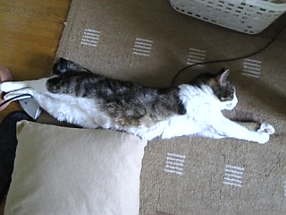 昼間のライブカメラに2匹が居ない事も多くなってきました これからの時季、カメラの配置にちょっと苦労しそう 猫達はソファーの上や タワーの上に居る事が多いみたいです カメラを二つ置き、配信を始めてます 本日も、みーたんはダラダラ~ 一人で伸び伸びちぅ 無防備で爆睡してます み) ニャニ?タカちん。 あら、起きちゃった^^; オッパイが見えてますが