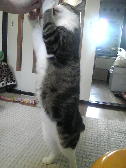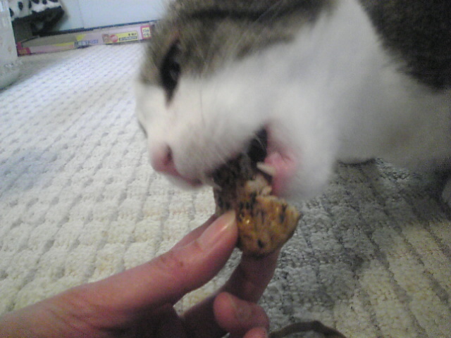 み) ニャニこれ? ねえ? ニャニ??? イイニオイがしゅるヨ! タカ心の声) どうせまた食べないくせにヽ(^ー^)ノ フッ・・・(笑) み) ガブッ! タカ) !Σ( ̄□ ̄|||) マ・・・・マジっすか??? み) おいちしょ~にゃんだも~ん♥ ・・・・・・・・・・・・・・ タカちんの煎餅ぢゃぁ~! その手を離せエエエエエエ!!! ε-(;ーωーA フゥ… (お煎餅なんてあげてはいけません) み) にぇえにぇえ? しゃっきの茶色の どこ? にぇえええええ!!! 目の前にあるだろが! あげないけどね( ̄‥ ̄)=3 フン 塚、アンヨが可愛いヨ(* ̄m ̄)プ