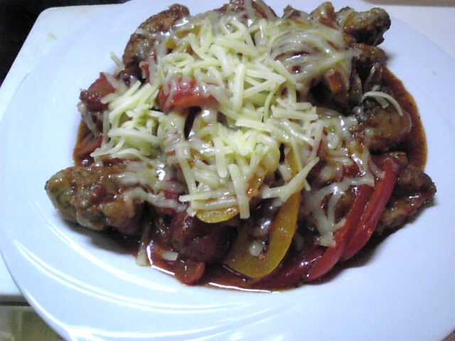 パプリカと一緒にホールトマトで煮込み