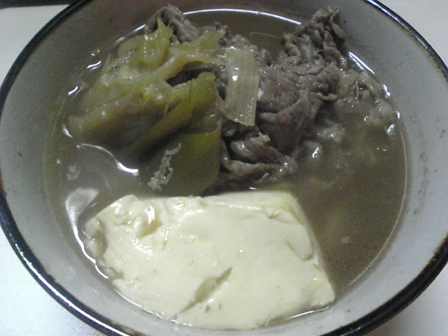 ちょっと写りは良くないケド、ネギ、牛肉、豆腐を煮た