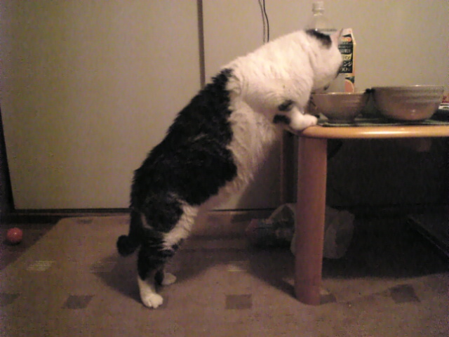 話しは戻って(笑)食後に横になるタカちんの前に変な猫