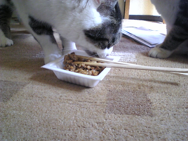 お友達の金平糖のみかんチャンが納豆を食べる姿に