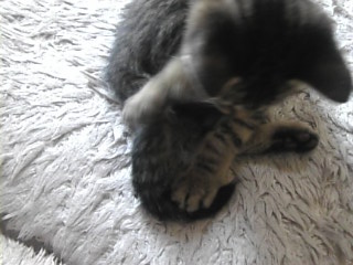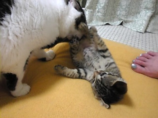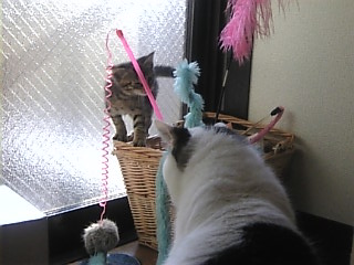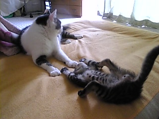 チビ) イイも~ん。自分の尻尾で遊ぶニャヨ!