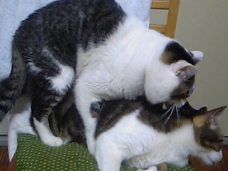 みーたんさん?そんなに慌てて Uんちをしなくても大丈夫だよ み) でも、チチくんがいじめるんだもん こんな事しゅるんだよ !Σ(×_×;)ギャフン! チチくん・・・ み) チチくん、イヤだにゃ!キライにゃ! ・・・・・・・・・・・・・・ ♂同士なのに・・・ お願いだからもっと仲良くして下さい m(_ _)m