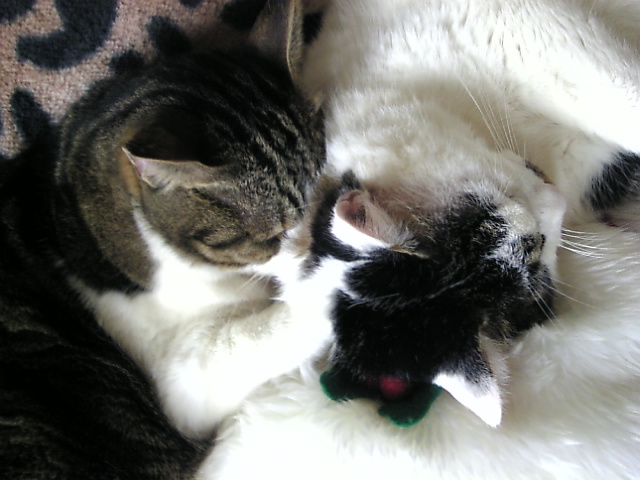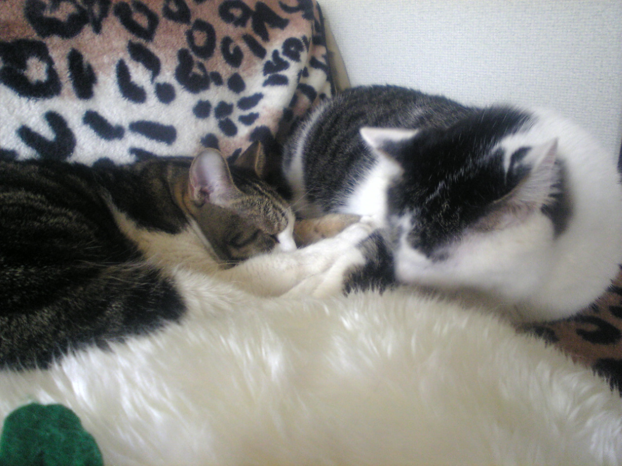 チチくんのお腹がすっごい・・・ でも足が可愛いかったりして(* ̄m ̄)プ 可愛い♥ この光景だけでも珍しいのです! 普段はケンカばかりの♂と♂(オカマとも言うが) みーたん、いつものとおり爆睡 チチくんが何だか・・・ この後、チチくんがみーたんを舐めていたのです 飼い主のタカちんも始め見た光景でした^^; ↓ 動画 (ビックリして飛び起きる所が 日頃の関係を物語っていたりして・・・)