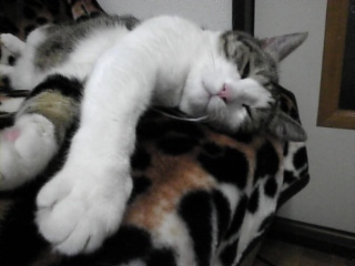 でもやっぱり 寝る事??? 本日も爆睡ちぅの、みーたん あれれ? 足を踏ん張って寝てるの?www ちょっと可愛い「あんよ」と「おなか」^^ でも・・・ 顔、怖いです( ̄▽ ̄;A 白目むいて寝てますが・・・ いつも可愛いみーたんがイイのカナ?w チチくんは・・・ こっちもすごかった・・・(; ̄ー ̄A アセアセ・・・ 動画(全てのボリュームを大にして見て下さい) ↓ やっぱり、猫さんのお仕事は 寝る事なんですかねぇ~(爆)