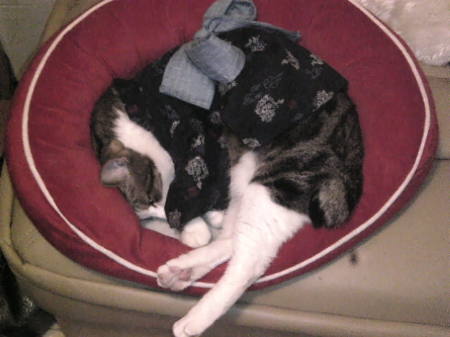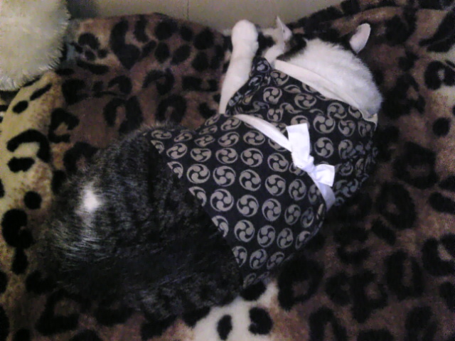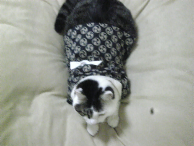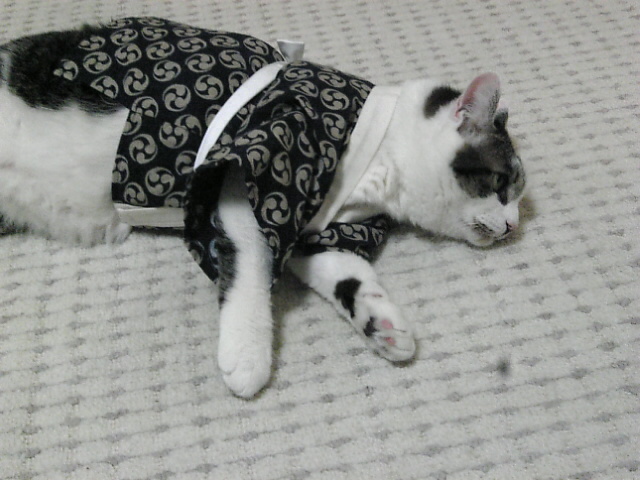 羽織・袴の写真を残したかったのですが シーズン的にありませんでした そして 食事風景○o。.○o。. 確か。。。 みーたん)浴衣 チチ)甚平さん 記念撮影 みーたん チチくん 節句と言うより お祭り・・・( ̄▽ ̄;A み) チチくん寝たにょ??? み) ぼくもおやしゅみにゃよぉ~ Zzzzzz.。o○.。o○ チチ) ボクもこっちで寝るニャ.。o○ タカちん) 待って!脱いでから寝て下さい! この後ちゃんと脱いで貰いました