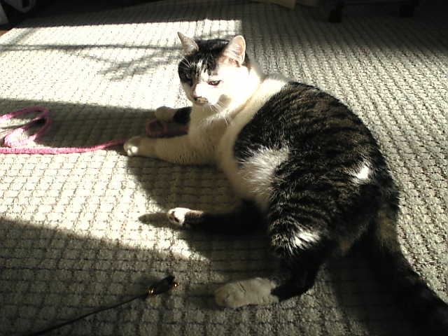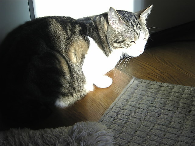 チチ)暖かいにゃ~ ゴロ~ン ゴロ~ン チチ) ちょっと影になってきたにゃ もうちょっと向こうかにゃ~移動~ チチ) 暖かいにゃ~ ゴロ~ン ゴロ~ン み) チチくん、ココも暖かいにょ~ み) あ! もっといいところみつけたにょ~ どこだろう・・・ このシルエット・・・ もしかして み) こっちの方が暖かいにゃ~ 眠くなってくるでちょ コノ後、みーたんはキャットタワーへ行くんだな・・・
