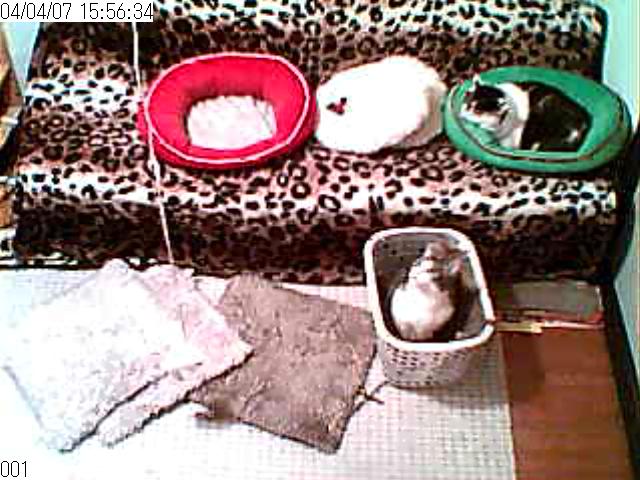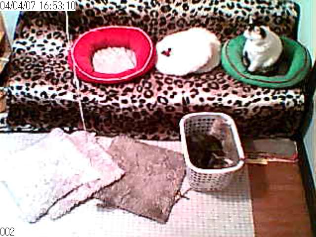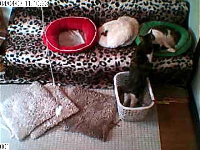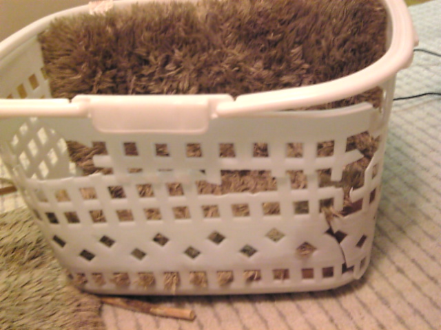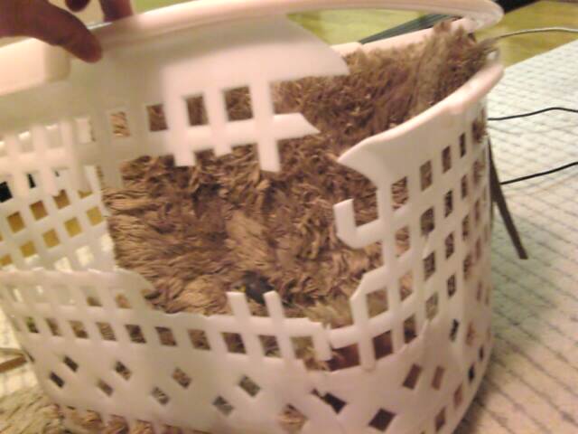 雷が鳴ったと思ったら、カゴの中で爆睡していた