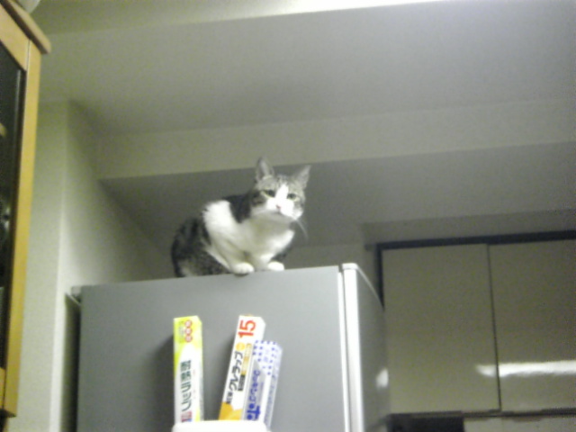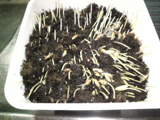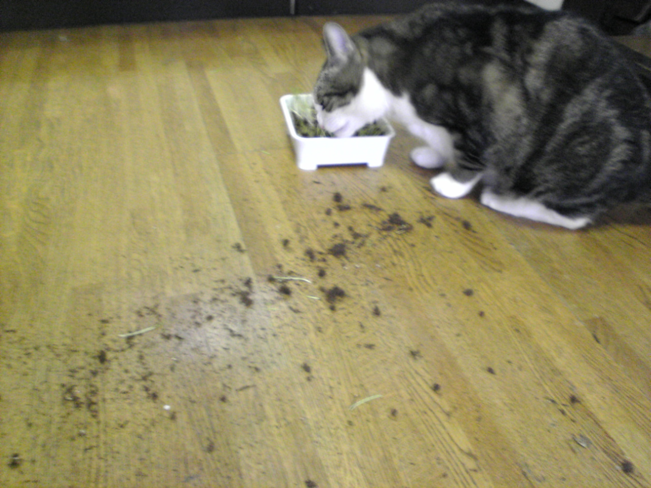 そういえば、冷蔵庫の上に猫草を置いてあった!
